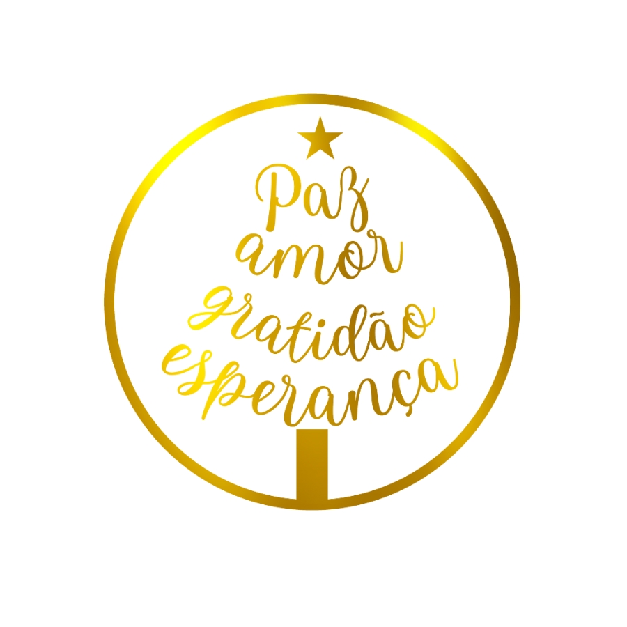 Papel adesivo redondo escrito "Paz, Amor, Gratidão, Esperança"