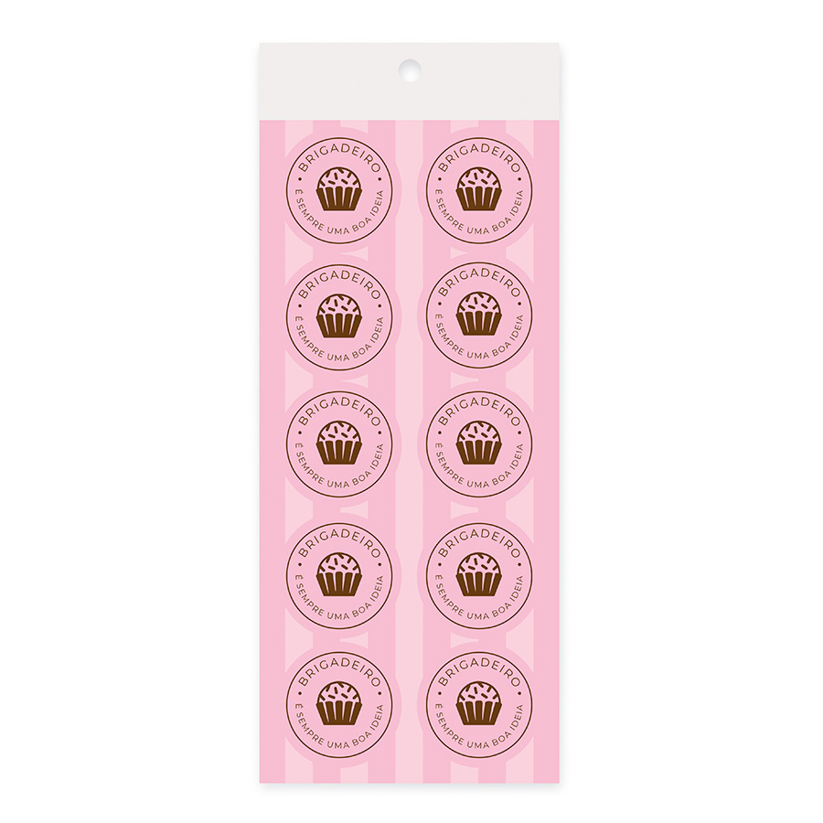 Adesivo decorativo redondo tema brigadeiro na cor rosa