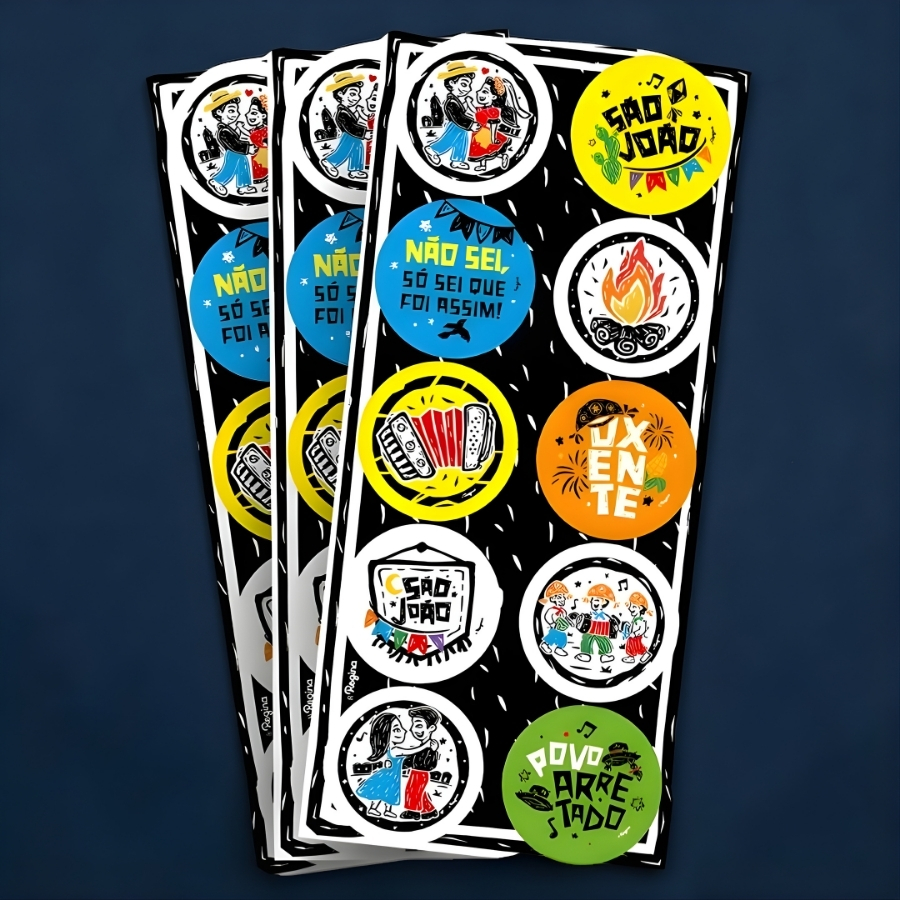 O Adesivo Redondo Decorativo Cordel de São João é uma opção prática e temática para complementar a decoração de festas juninas. Com visual inspirado no tradicional estilo de cordel, ele ajuda a trazer mais charme e personalidade para embalagens, lembrancinhas e itens decorativos do arraial.
