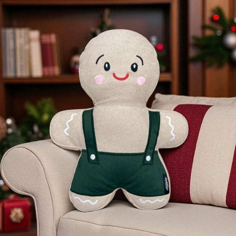 Medindo 26x33cm, esta almofada é ideal para sofás, poltronas e camas, proporcionando maciez e estilo. Indicada para famílias que desejam unir praticidade, conforto e uma decoração natalina charmosa, destacando cada personagem da família Ginger.
