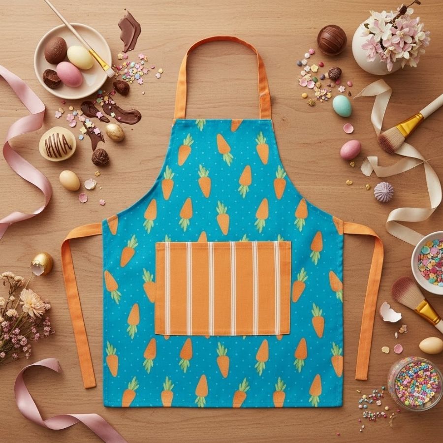 Com acabamento cuidadoso e cores vibrantes, o Avental de Páscoa - Azul e Laranja com Cenouras é ideal para artesãos, confeiteiros e pequenos produtores que desejam unir estética e funcionalidade. Seu formato anatômico permite liberdade de movimento, enquanto a estampa temática agrega charme às produções de Páscoa, combinando perfeitamente com kits artesanais, embalagens decoradas, laços, caixas temáticas e sessões de fotos sazonais. Uma peça versátil, que não apenas protege, mas também valoriza o ambiente de trabalho e reforça a identidade visual de campanhas e produções especiais.