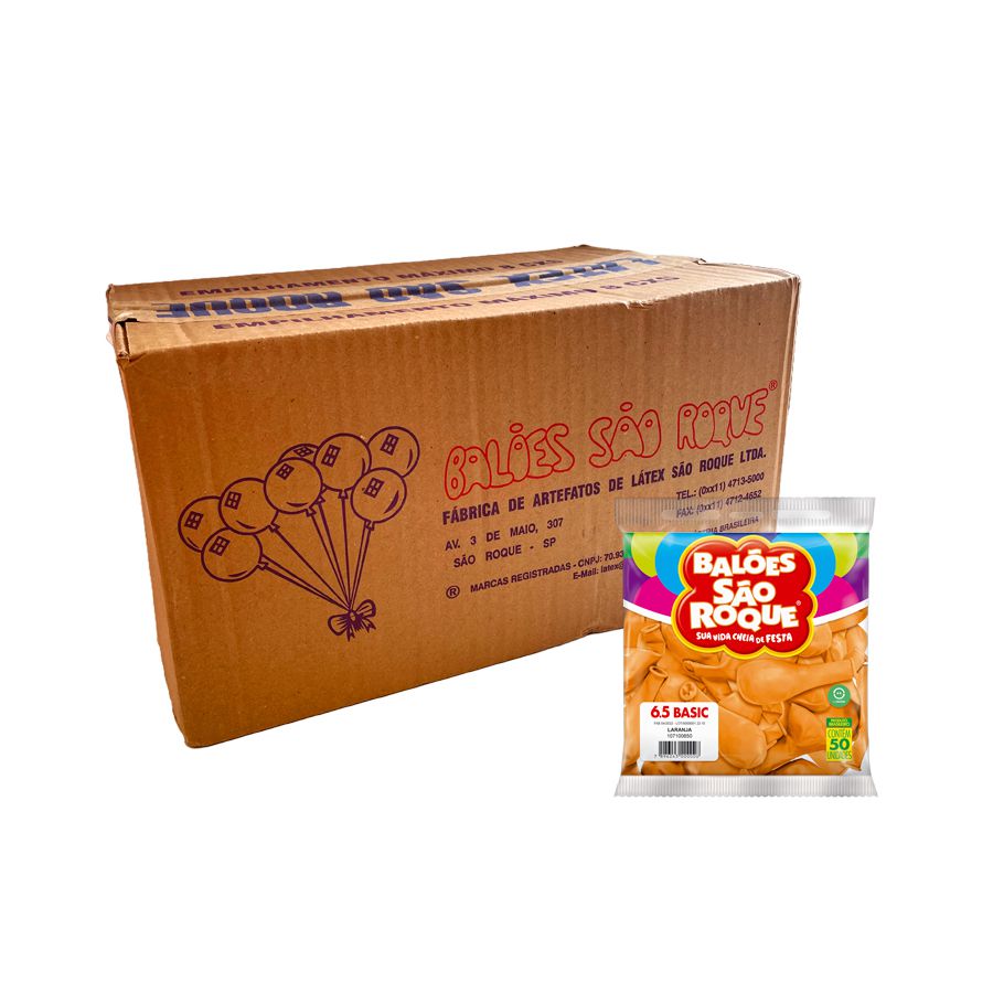 Balão de Festa 6,5" Basic - Laranja - Caixa com 25 pacotes - 1250 unidades - Atacado São Roque - Rizzo