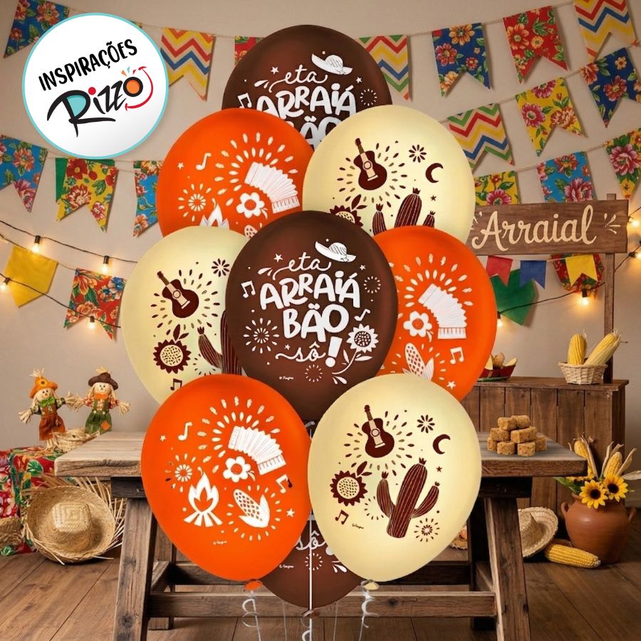 O Balão de Festa Junina Decorado 9" 23cm - Arraiá Bão! vem em um pacote com 25 unidades, sendo a escolha ideal para deixar sua festa mais animada, autêntica e inesquecível.