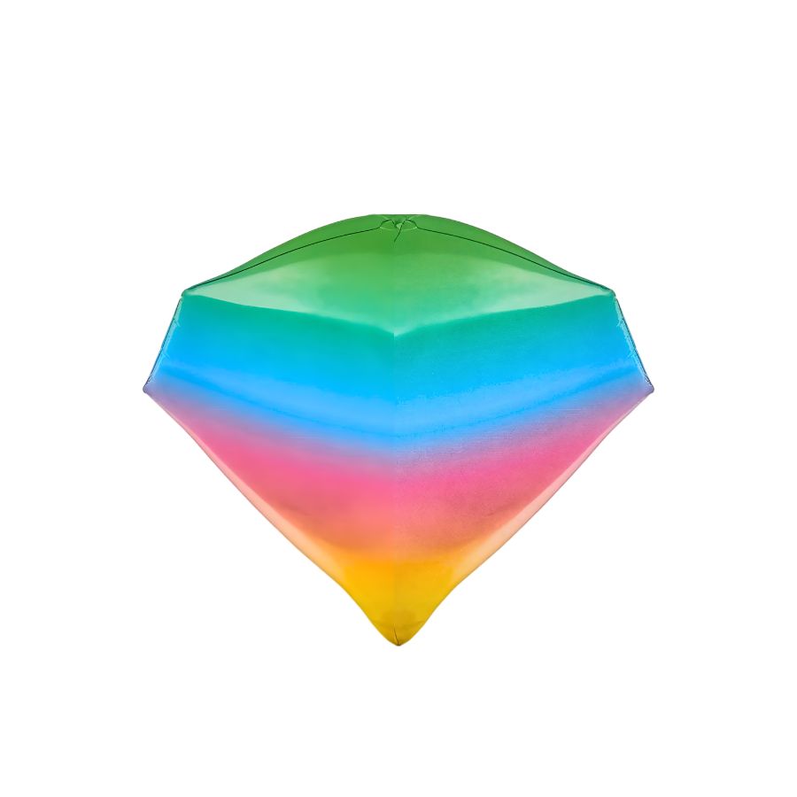 Balão metalizado arco-íris de 18" (45cm), colorido, resistente e ideal para festas. Pode ser inflado com ar ou hélio.