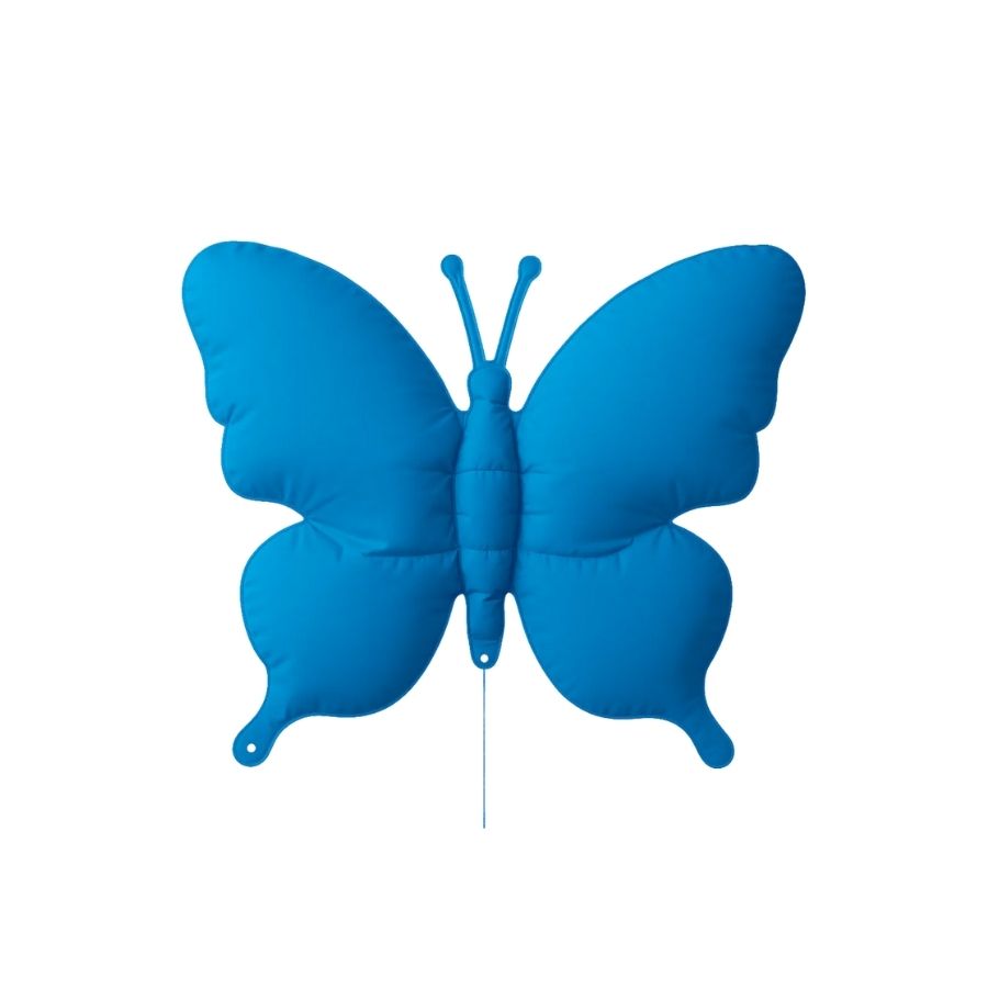 O Balão de Festa Metalizado 26" 65cm - Borboleta Azul Neon é perfeito para decorar aniversários, festas temáticas e chás de bebê, podendo ser inflado com ar ou hélio para diferentes composições criativas.