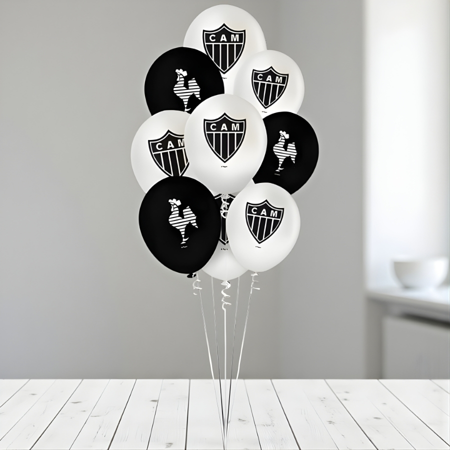 O Balão Látex Redondo 9" Atlético Mineiro - 23cm é perfeito para torcedores que desejam levar a paixão pelo Galo para festas, aniversários e eventos temáticos. Com as cores do time, ele transforma qualquer ambiente em um espaço animado, divertido e cheio de identidade alvinegra.