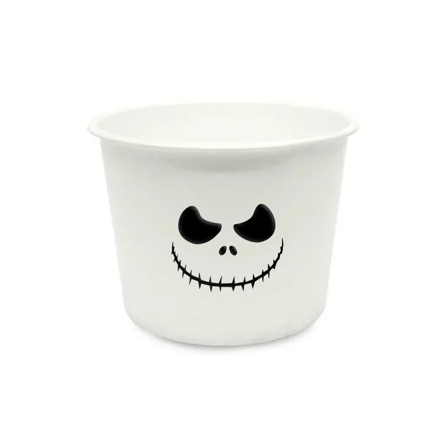 Balde de pipoca com adesivo de vinil no tema Halloween, uma adição encantadora à sua festa assustadoramente divertida. Com capacidade generosa de 1,5 litros, este balde é perfeito para armazenar pipoca, doces, balas e guloseimas que complementarão maravilhosamente a sua mesa decorada.