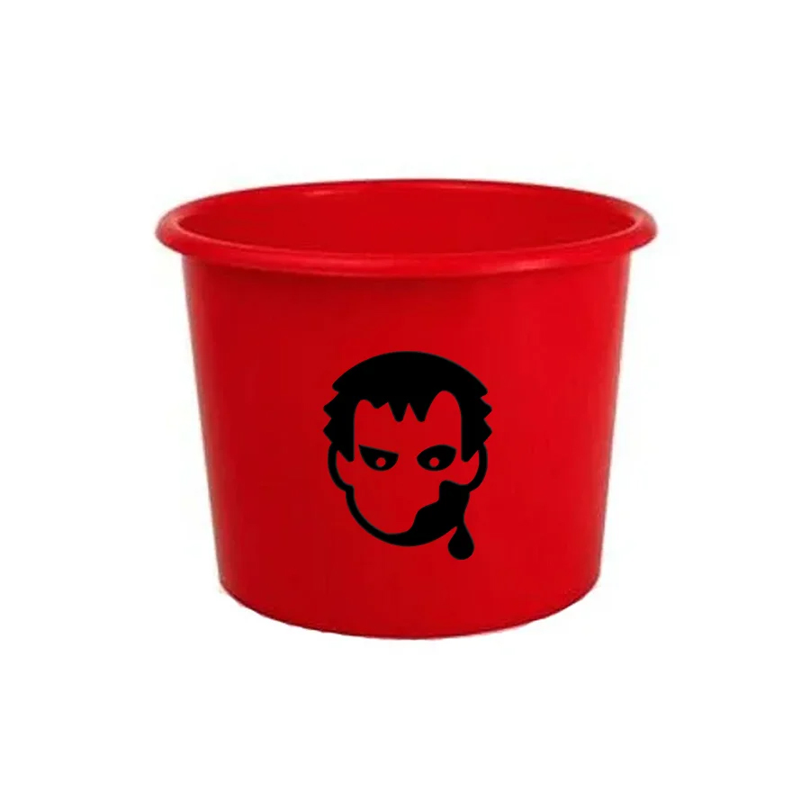 Balde de pipoca na cor vermelho com um vinil adesivo removível. Limpar com delicadeza para não danificá-lo. Ideal para colocar pipoca e guloseimas diversas.