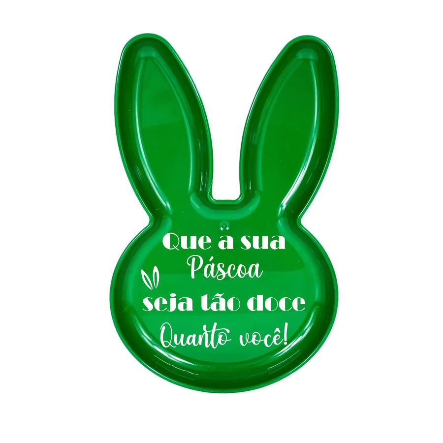 bandeja de páscoa;coelho decorativo páscoa;bandeja verde 25x15cm;item decorativo páscoa;acessório temático páscoa;bandeja para doces;decoração com coelho páscoa;bandeja charmosa verde;presente de páscoa;decoração temática páscoa;bandeja resistente e elegante;bandeja para chocolates;item decorativo verde páscoa;suporte para doces páscoa;bandeja com frase de páscoa;bandeja festiva páscoa;decoração alegre páscoa;bandeja funcional para doces;bandeja temática páscoa;decoração com coelho e frase.