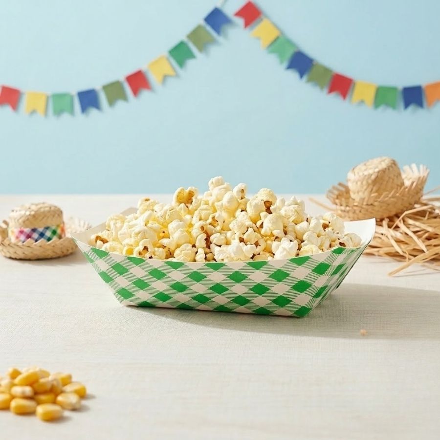 A bandejinha de doces xadrez é perfeita para valorizar a apresentação dos docinhos de festa junina com um toque típico e encantador. Com estampa xadrez temática, ela combina perfeitamente com a decoração de festa junina, trazendo o estilo clássico das decorações de arraial. Produzida em papel resistente para alimentos, a bandejinha é prática, leve e ideal para organizar doces de forma bonita e higiênica na mesa da festa. Muito utilizada em mesas de doces de festa junina, arraiais, quermesses, festas escolares e aniversários temáticos, a bandejinha é perfeita para servir brigadeiros, beijinhos, trufas, bombons, além de pipoca, paçoca, pé de moleque, balas e doces embalados. Uma dica prática é usar as bandejinhas para montar porções individuais de doces ou kits de lembrancinhas, deixando a mesa organizada e facilitando na hora de servir os convidados.