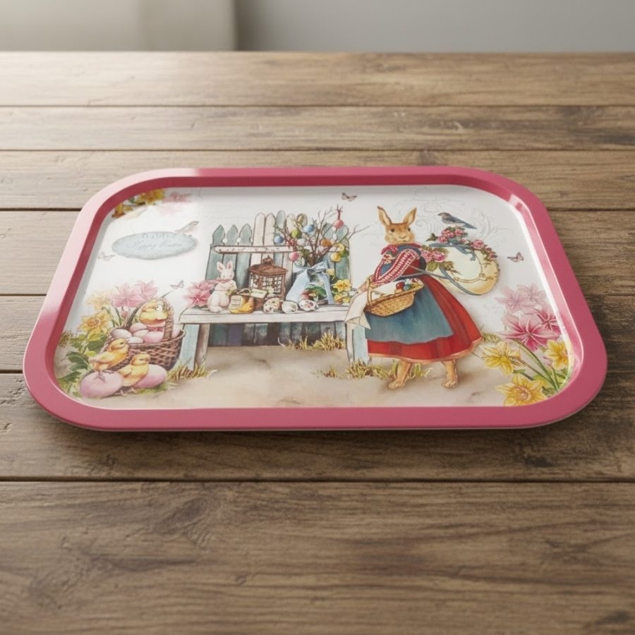 Indicada para mesas, aparadores, balcões e vitrines, esta bandeja resolve a necessidade de reunir e evidenciar elementos decorativos em um único espaço. A Bandeja Decorativa de Páscoa Coelha de Vestido Vermelho facilita a criação de cenários pascais bem estruturados, sendo ideal para quem busca praticidade aliada a um visual temático marcante.