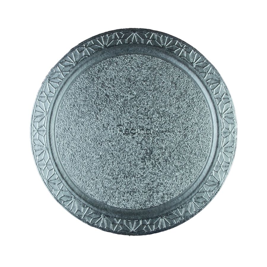 Base redonda resistente para bolos, acabamento prata metalizado, disponível em múltiplos tamanhos para uso profissional.