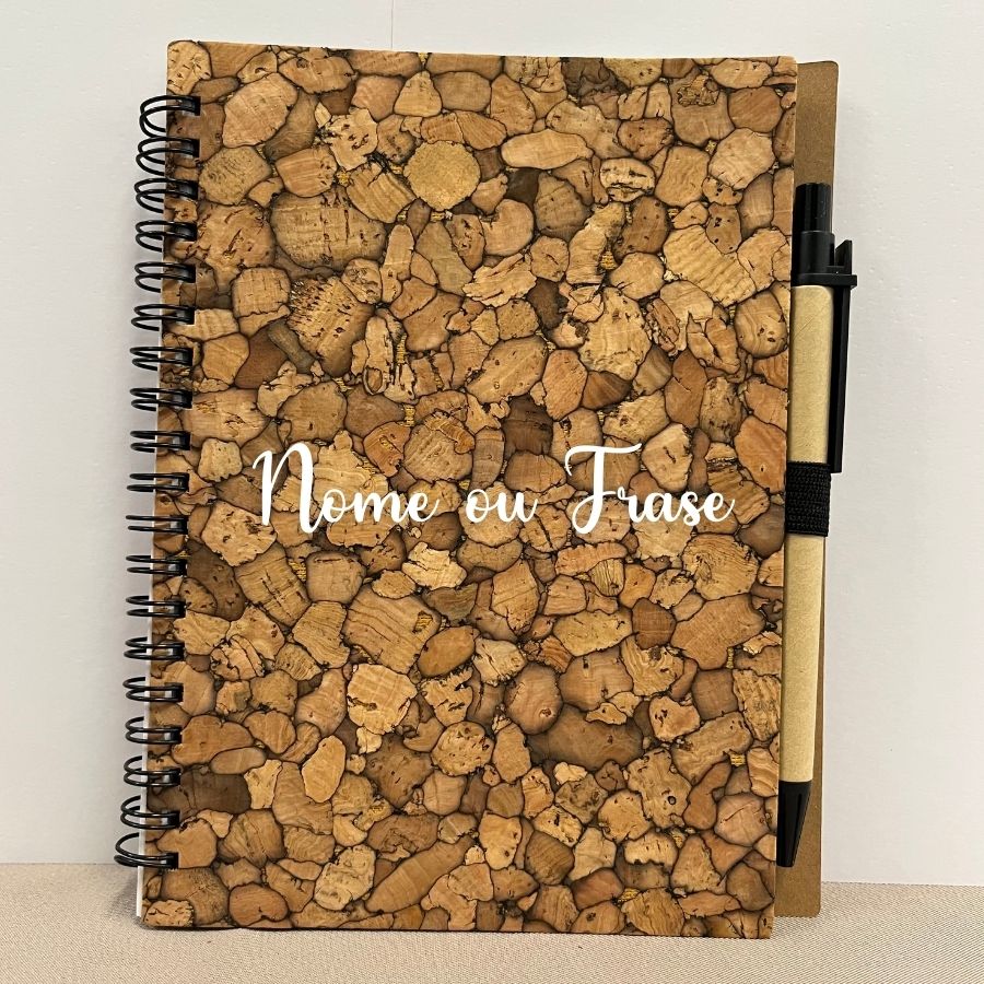 Disponível em várias opções de capa, como casca de árvore com glitter, casca de árvore simples, papelão e troncos, cada um com seu estilo único. A caneta acompanha o bloco, garantindo praticidade e conveniência para uso diário ou como brinde personalizado.