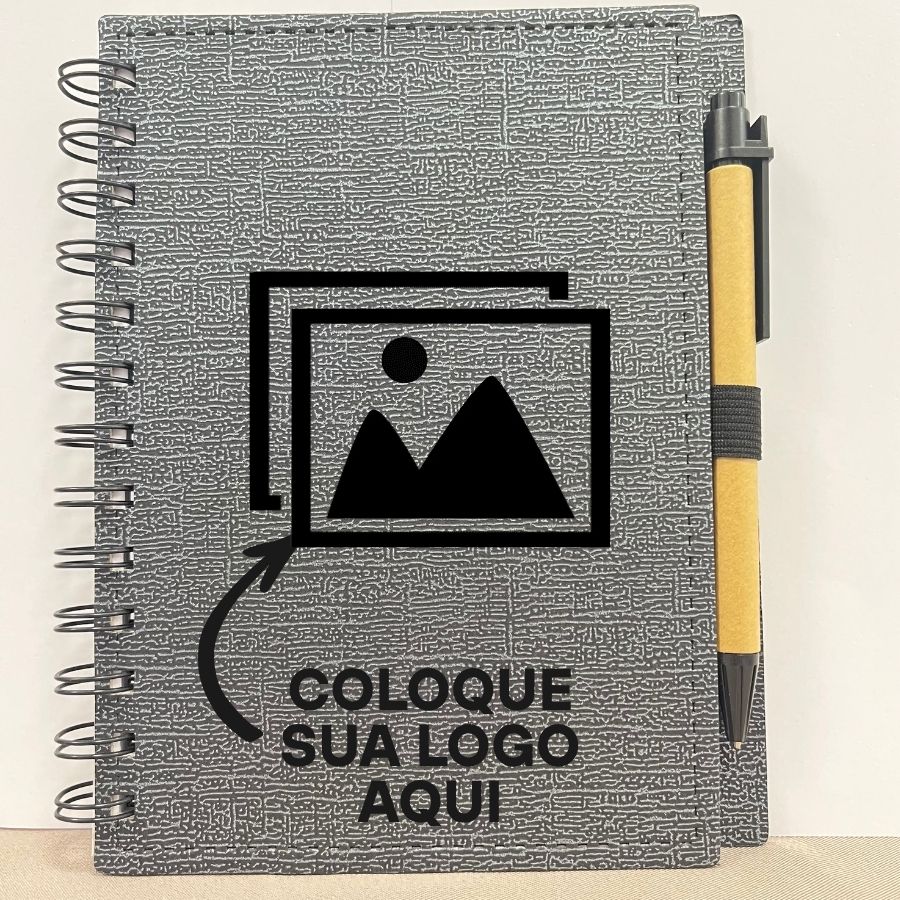 Disponível nas cores preto com prata, preto com dourado, laranja e amarelo, sua capa em couro sintético transmite sofisticação. A caneta inclusa torna o item ainda mais completo e funcional.