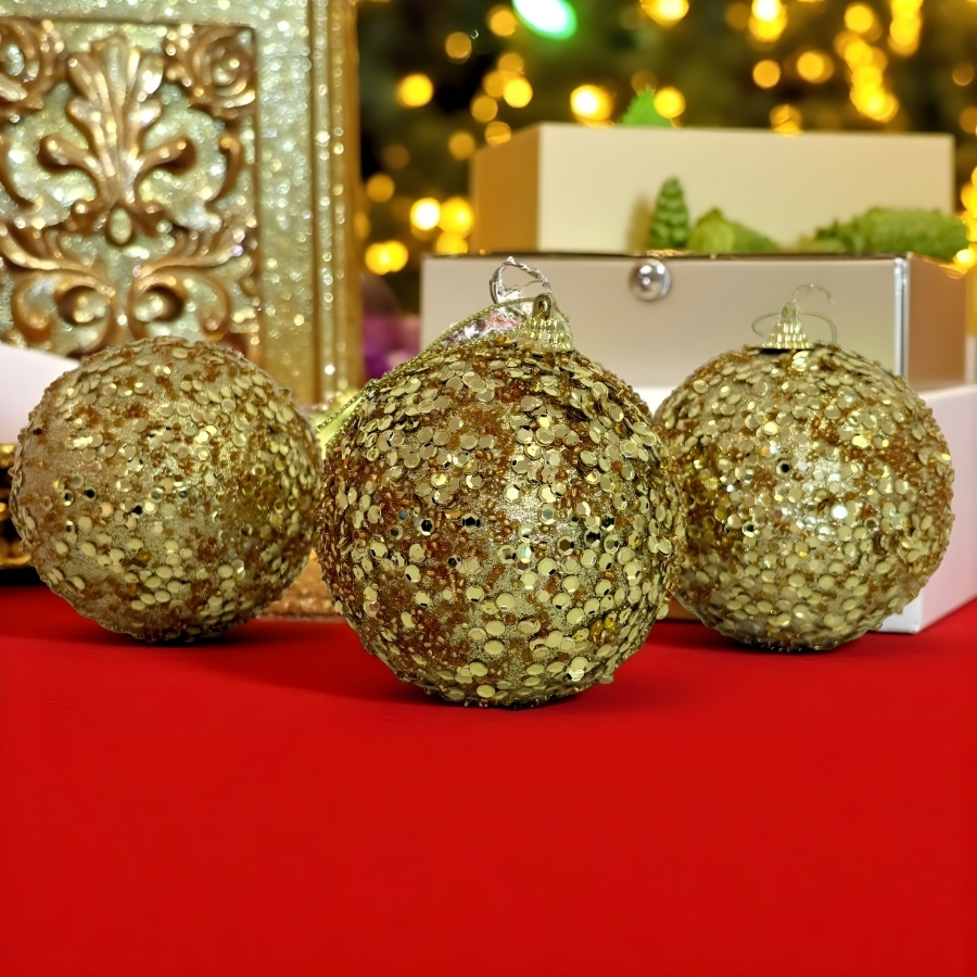 Com acabamento dourado cintilante, essas bolas refletem a luz de forma delicada, criando um efeito visual encantador. São perfeitas para compor decorações clássicas, modernas ou temáticas, harmonizando facilmente com enfeites em tons vermelhos, brancos e verdes.