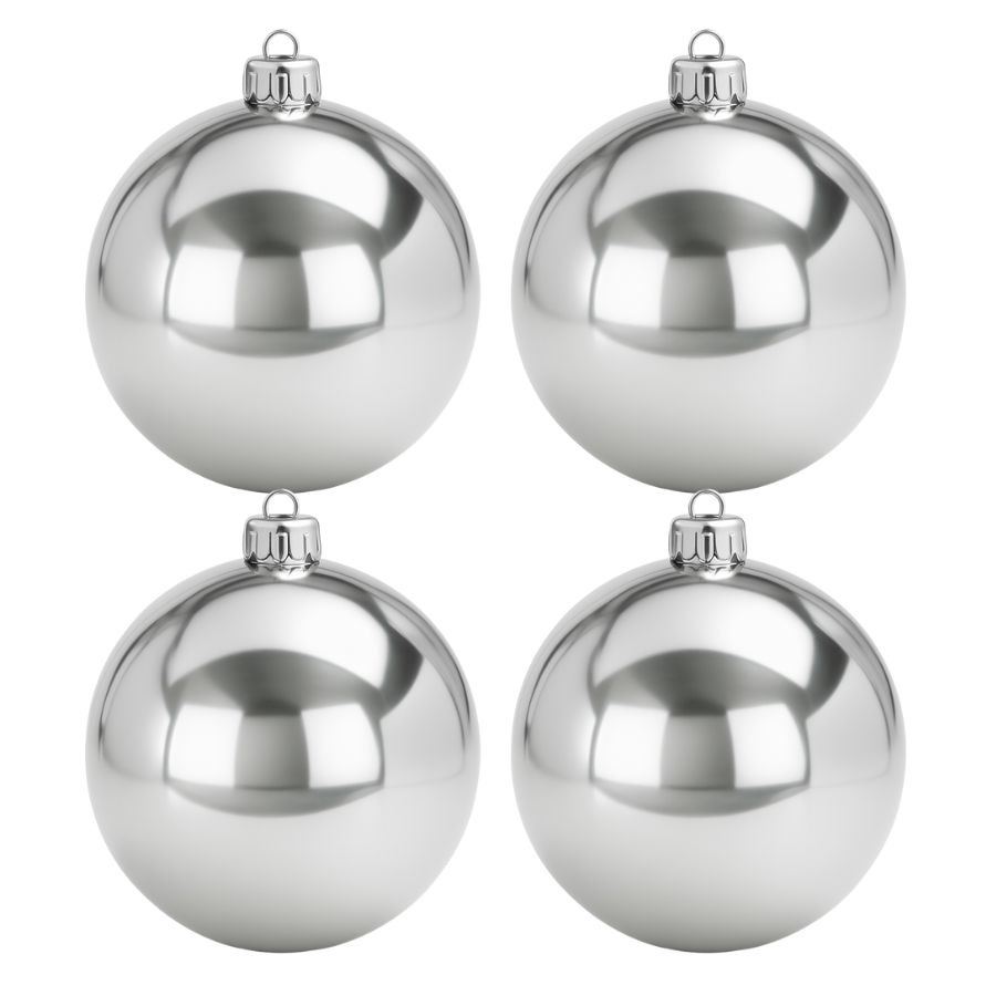 Produzidas em material resistente, são práticas de manusear e permitem combinar múltiplas unidades, criando efeitos variados em árvores, coroas e demais decorações. Seu tom prata, que pode apresentar leves variações, remete à tradição natalina e se integra naturalmente a qualquer cenário festivo.