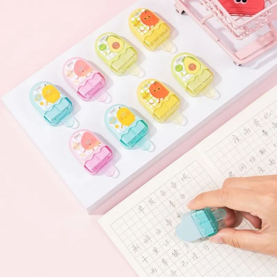 A Borracha com Capa Protetora Picolé é comercializada em caixa com 12 unidades, contendo três cores de cada modelo, perfeita para escolas, papelarias, kits escolares, lembrancinhas, brindes ou revenda. Um item funcional, criativo e encantador que une utilidade, organização e diversão.