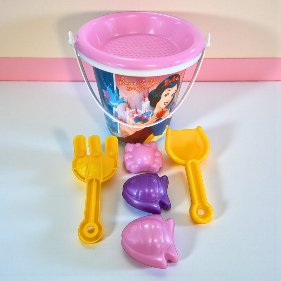 Composto por 7 peças, o Brinquedo Kit Balde de Praia Infantil inspirado nas Princesas Disney inclui 1 baldinho, 1 peneira, 3 moldes e 2 ferramentas de escavar infantil, oferecendo diversas possibilidades de uso durante a brincadeira. Cada item contribui para estimular a coordenação motora, a criatividade e a construção de cenários na areia, tornando a atividade mais dinâmica e envolvente. Produzido em plástico, o conjunto é prático para o dia a dia e fácil de manusear pelas crianças. Além da utilidade nas brincadeiras, o kit também pode complementar festas temáticas ou momentos de lazer em família. Uma opção que une beleza visual e funcionalidade, pensada para incentivar a imaginação infantil em atividades ao ar livre inspiradas no universo mágico das princesas.