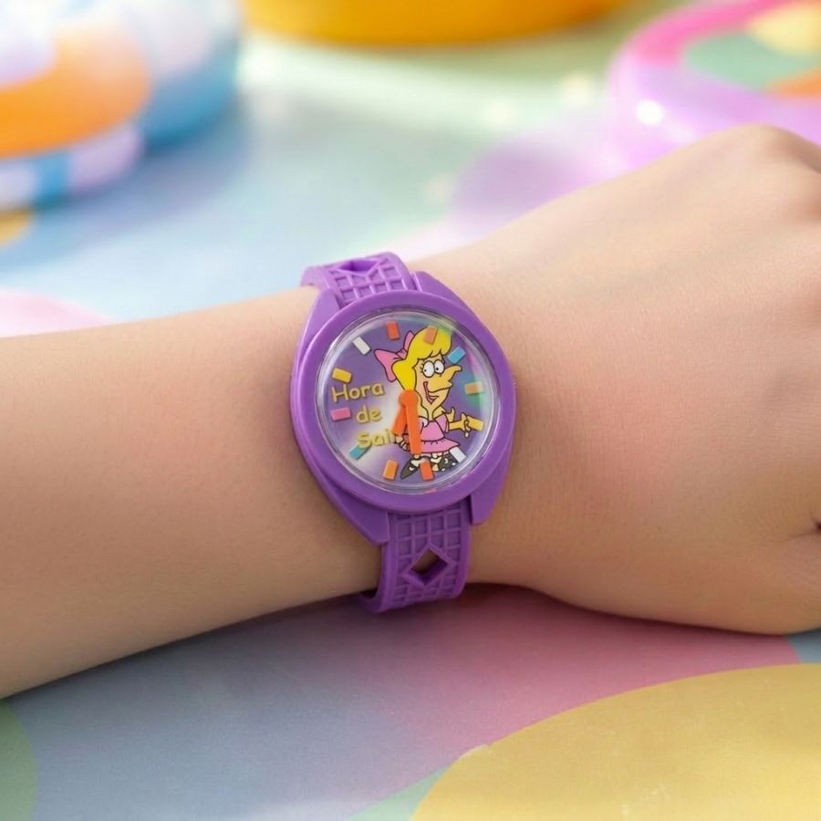Brinquedo de relógio infantil colorido, a cor e a estampa dele podem variar sem a opção de escolha