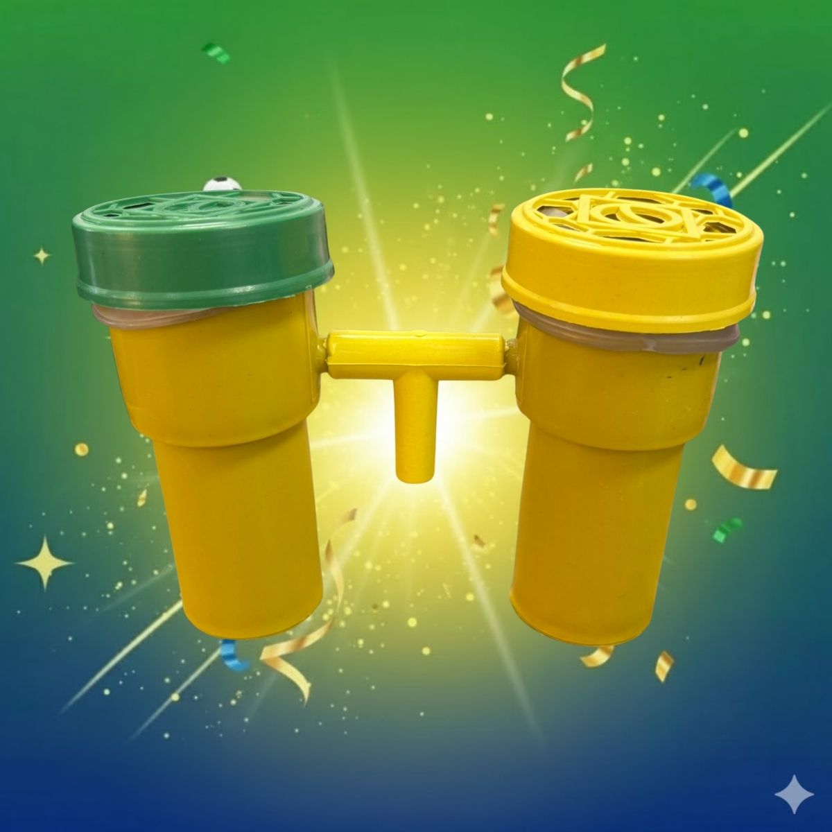 A Buzina Dupla é perfeita para animar a torcida nos jogos e comemorações da Copa do Mundo. Na cor amarelo, ela traz alegria, destaque visual e representa toda a vibração do futebol, tornando cada lance ainda mais emocionante e cheio de energia.