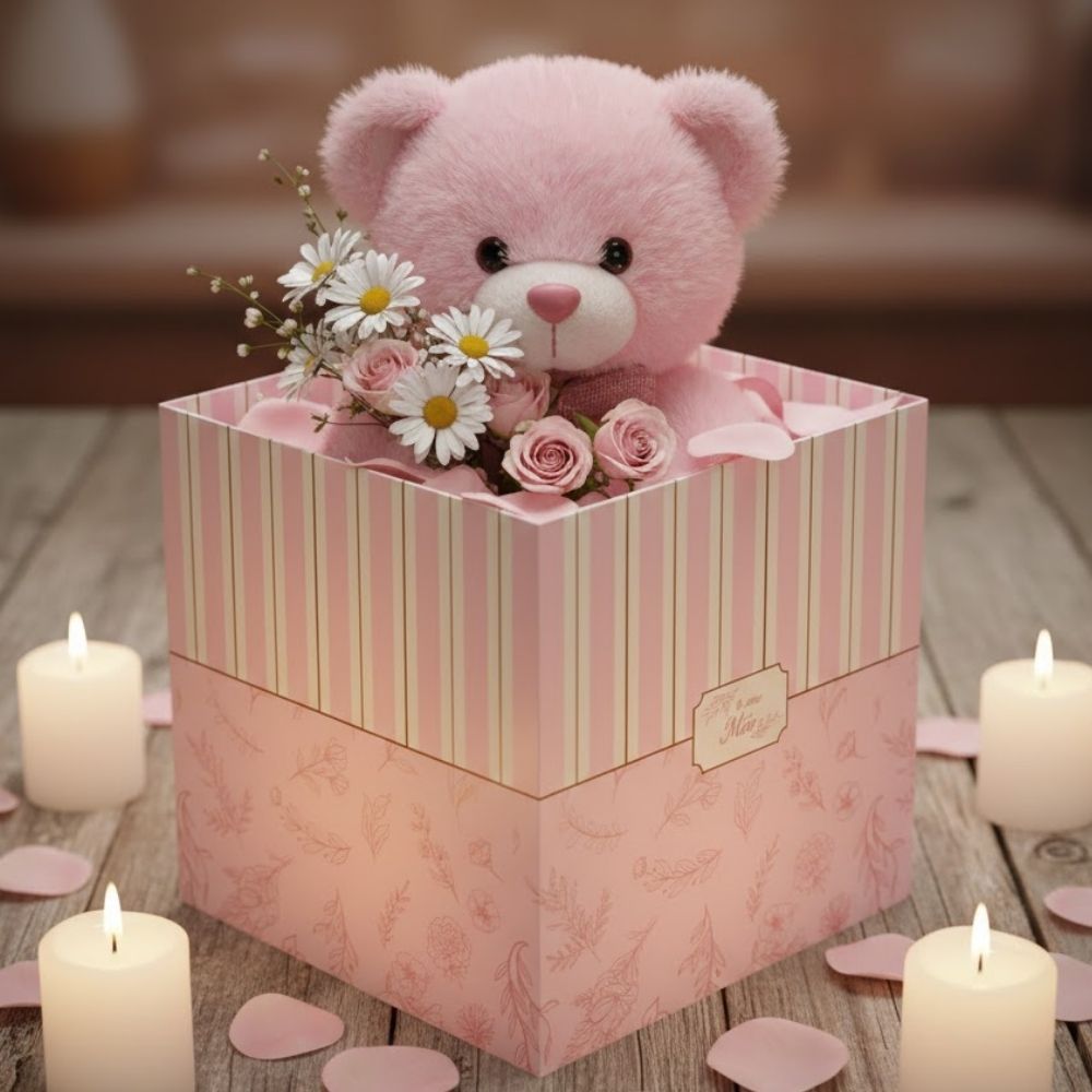 Com aproximadamente 15x15x15cm, possui estrutura firme e tamanho ideal para acomodar flores, kits presenteáveis, chocolates e lembranças especiais. Seu design delicado valoriza a apresentação e transforma qualquer composição em um presente ainda mais especial.