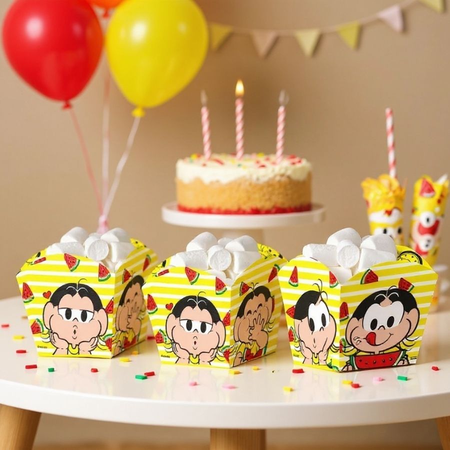 Com dimensões de 10x10x8,5cm, o cachepot da Magali possui design colorido e alegre, destacando a personagem em uma estampa vibrante que encanta crianças e adultos. Além de decorar, também pode ser usado como suporte criativo para lembrancinhas, tornando sua festa ainda mais especial e temática.