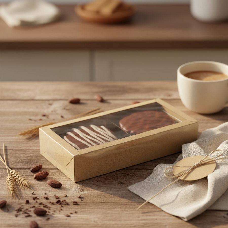 Com medidas de 16,8x9,5x4cm, é ideal para confeiteiros, lembrancinhas corporativas e eventos especiais. A combinação do kraft natural com o acabamento transparente oferece um toque rústico-chique, perfeito para ocasiões que pedem beleza e bom gosto na embalagem.