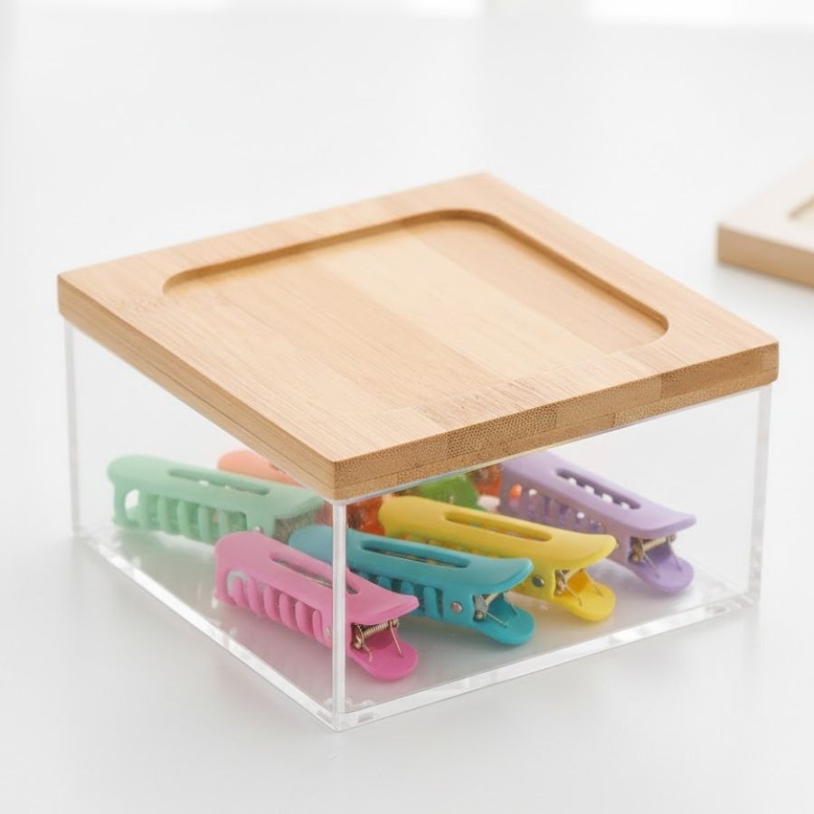 Caixa Acrílica com Tampa de Bambu - 9x9x5cm - 1 unidade - Cromus - Rizzo