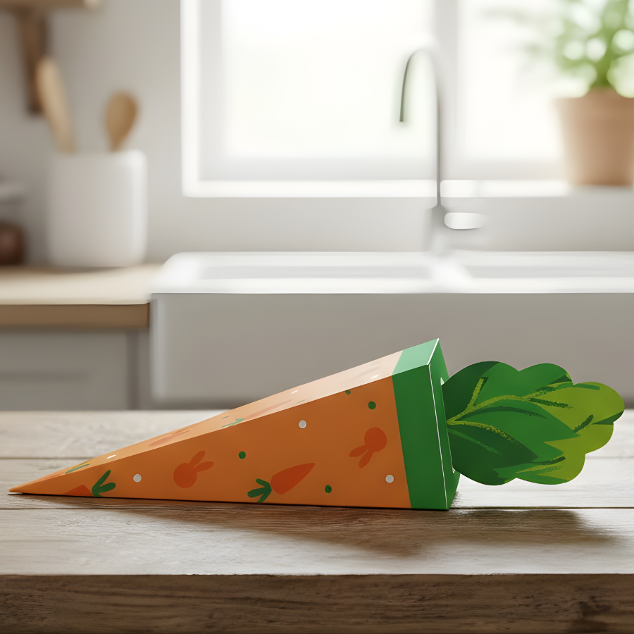 A Caixa Cone Cenoura M é a escolha ideal para quem deseja surpreender na Páscoa com uma embalagem lúdica e encantadora.