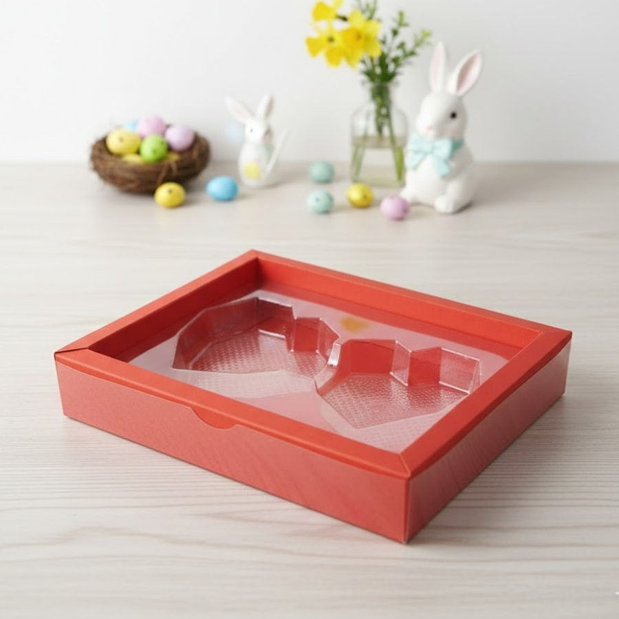 Indicada para confeiteiros, chocolaterias, artesãos e lojas de presentes, essa caixa resolve a necessidade de acomodar chocolates de forma separada e bem distribuída. As duas cavidades facilitam a organização do conteúdo, agregando valor ao produto final e melhorando a percepção do cliente.