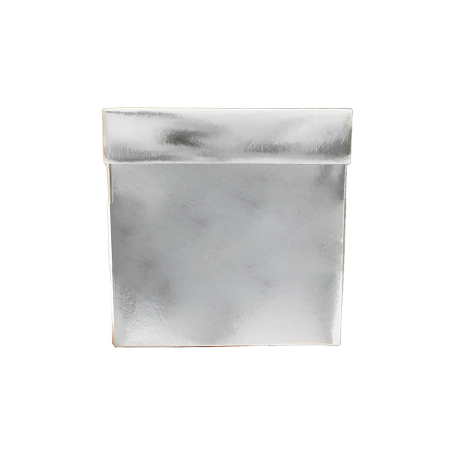 Caixa cubo metalizada para presente na cor prata no tamanho G.