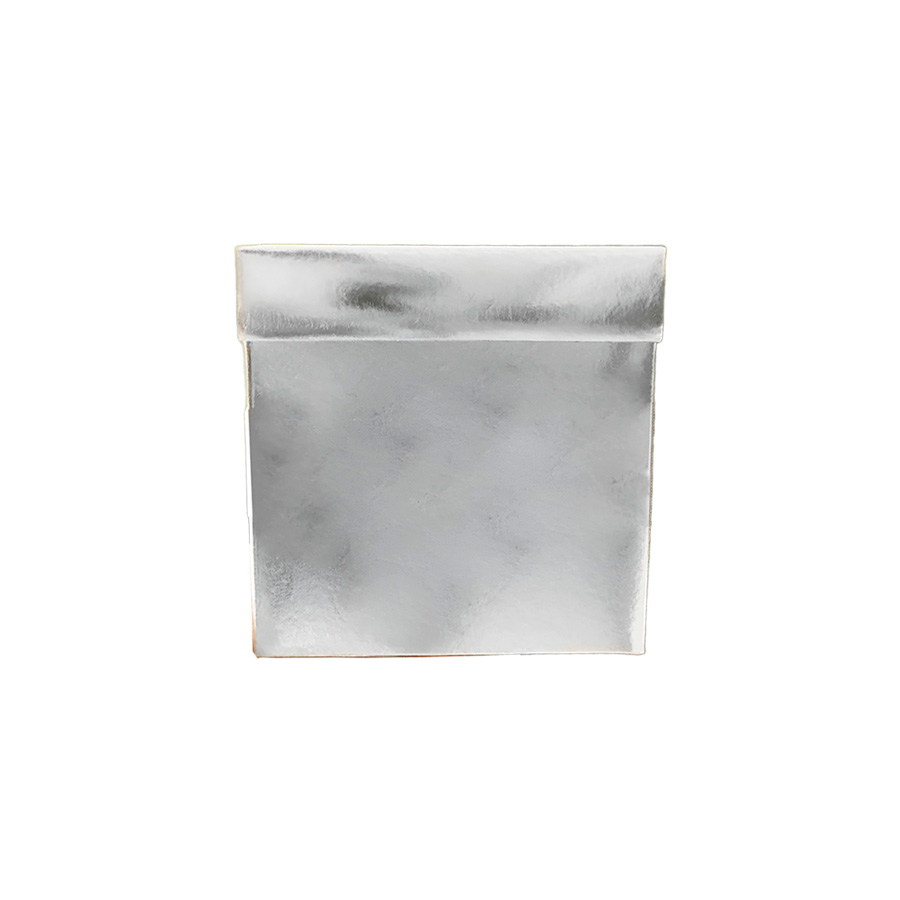 Caixa cubo metalizada para presente na cor prata no tamanho M.