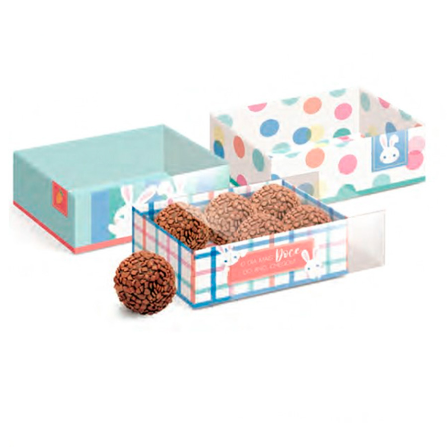 A tampa transparente de acetato não apenas permite uma visão clara do conteúdo interno, mas também destaca as encantadoras ilustrações de coelhinhos, tornando esta caixa uma opção ideal para presentes ou armazenamento de itens especiais. Seja para embalar delicados mimos de Páscoa ou para organizar objetos pequenos de forma charmosa, a "Caixa Luva com Tampa Cristal - Os Coelhinhos Sortido" é um convite para a celebração, combinando funcionalidade e estética de maneira única.