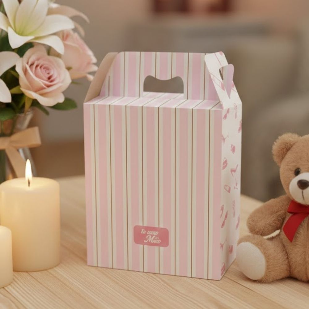 A Caixa Maleta Retangular Mãe Essência é perfeita para montar presentes sofisticados com praticidade e charme. Sua estrutura firme se transforma em uma maletinha resistente, garantindo segurança no transporte e uma apresentação elegante. A linha Mãe Essência combina listras em branco e rosa com estampa temática de lazer e bem-estar, trazendo um visual feminino, moderno e delicado.
