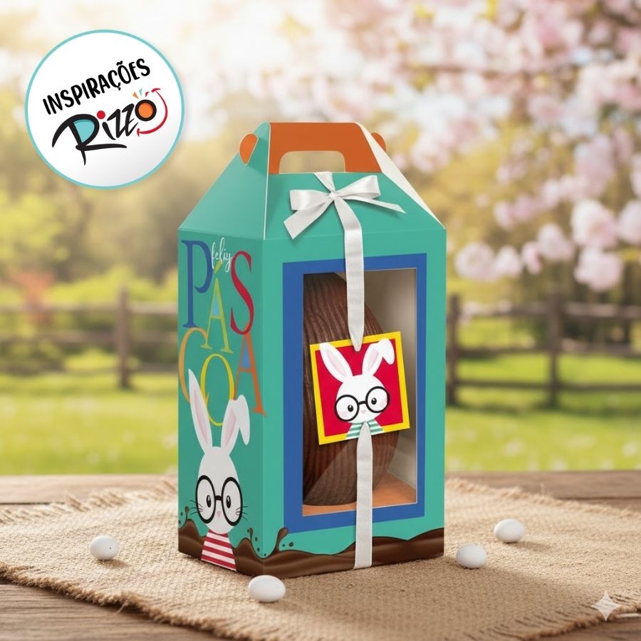 A Caixa Maleta Vertical com Visor Páscoa Cores para Ovos de 500g é uma embalagem decorativa, funcional e encantadora, ideal para apresentar ovos artesanais com organização, charme e alto valor agregado.