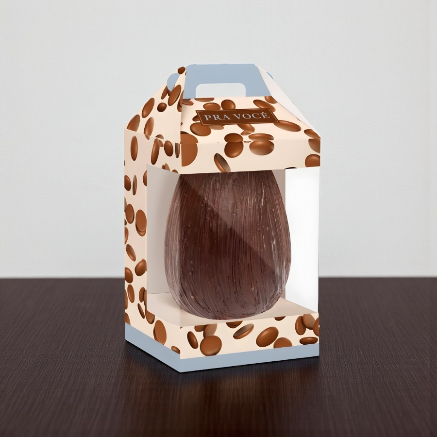 Com visor transparente na tampa, o produto dentro da embalagem fica visível, destacando o cuidado e a beleza da criação. É perfeita para ovos artesanais e personalizados, agregando valor e charme à experiência de presentear.