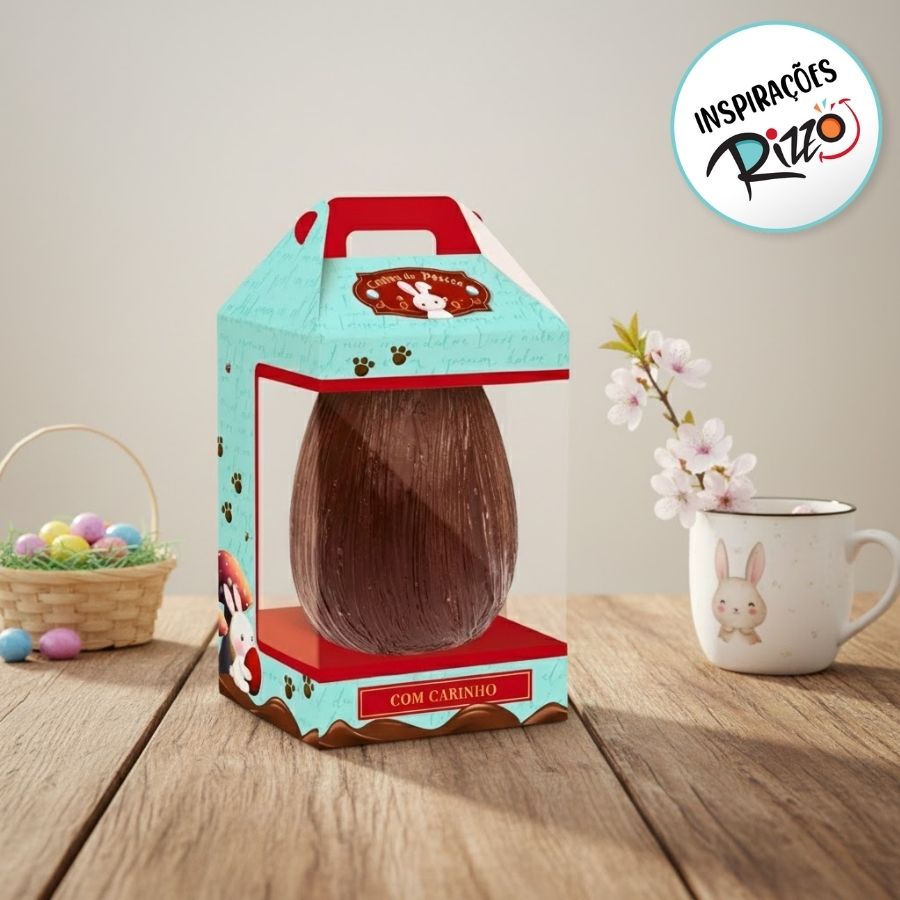 Produzida em material resistente, acomoda ovos de 250g com segurança, garantindo firmeza no transporte e uma finalização profissional. O formato tipo maleta acrescenta praticidade e charme, tornando a embalagem perfeita para presentes especiais. Pode ser personalizada com laços, tags e pequenos adornos para deixar o resultado ainda mais encantador.