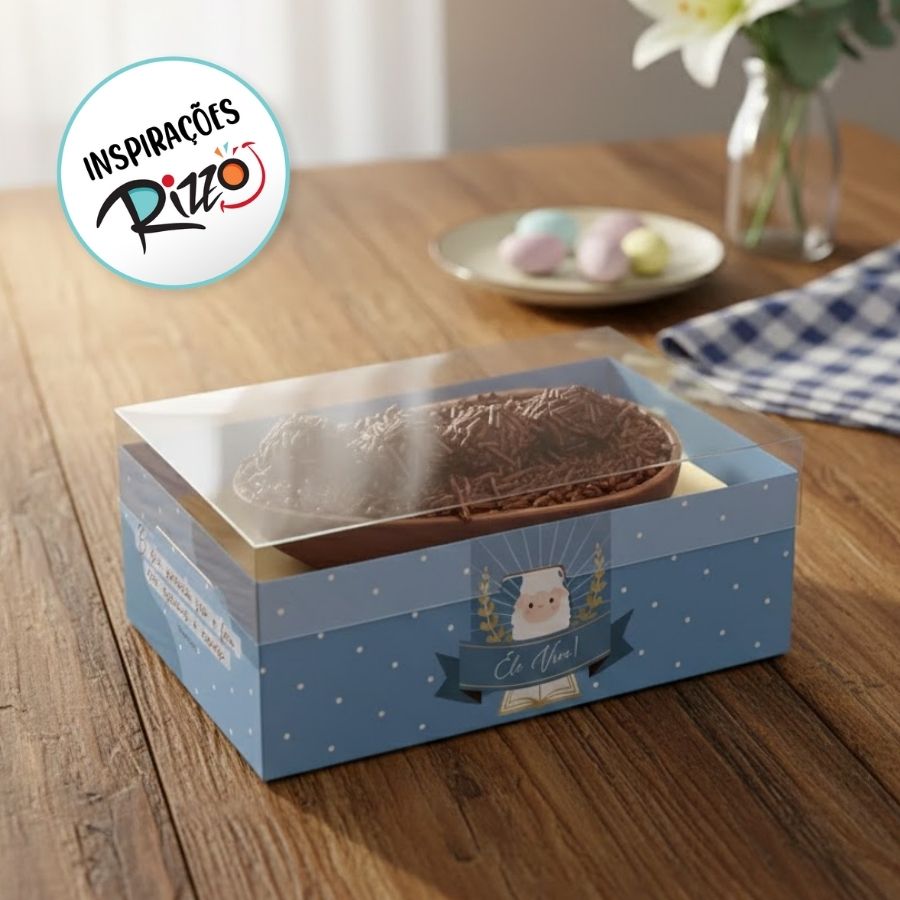 A Caixa New Moldura para Meio Ovo 350g Cordeirinho é temática, resistente e perfeita para realçar ovos artesanais com charme, delicadeza e sofisticação.