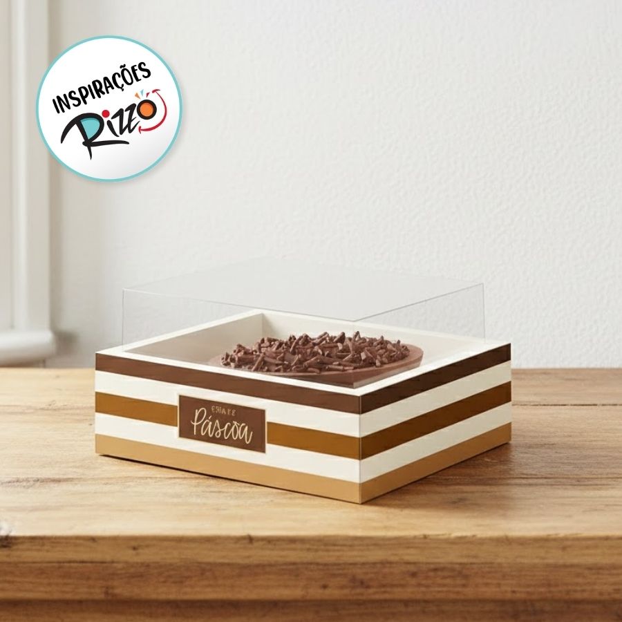 A Caixa New Moldura para Meio Ovo de 350g Tons de Chocolate é resistente, sofisticada e perfeita para destacar produtos com charme e qualidade.