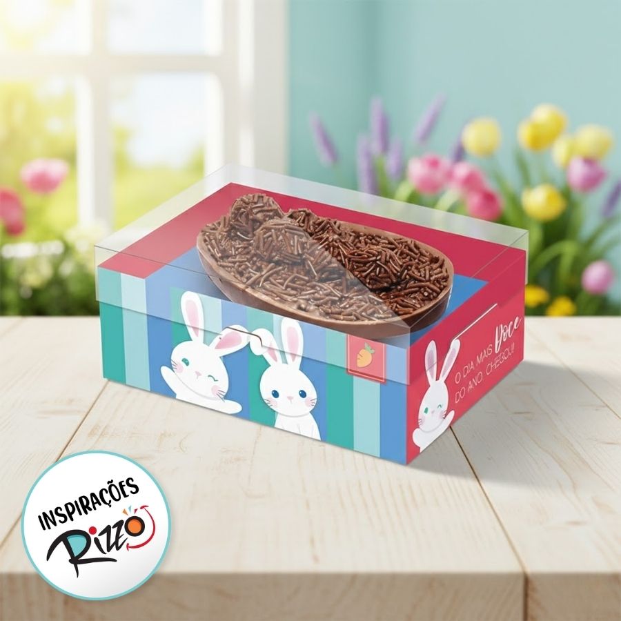 Produzida em material resistente, a Caixa New Practice Coelhinhos garante proteção ao chocolate, mantendo o ovo firme e seguro durante o transporte. Sua montagem prática e estrutura bem planejada facilitam o uso no dia a dia, permitindo ainda personalizações com laços, fitas, tags e adesivos para deixar cada criação ainda mais especial. É a opção perfeita para quem busca unir praticidade, beleza e delicadeza em uma única embalagem.