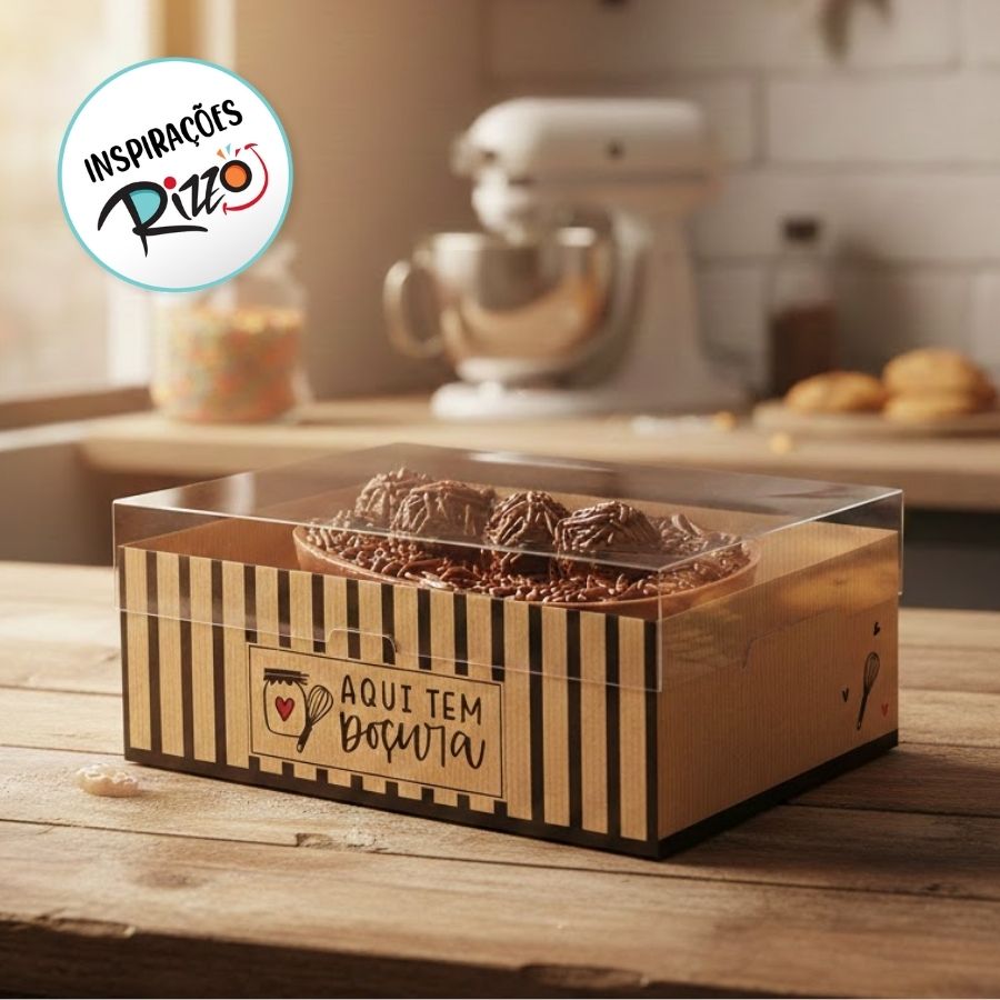 Produzida em material resistente, a caixa para meio ovo proporciona praticidade para confeiteiros e lojistas, além de permitir personalizações com fitas, tags e adesivos. A estética artesanal combinada com o toque delicado do tema Doçura cria uma presença encantadora para quem deseja encantar os clientes com embalagens diferenciadas.