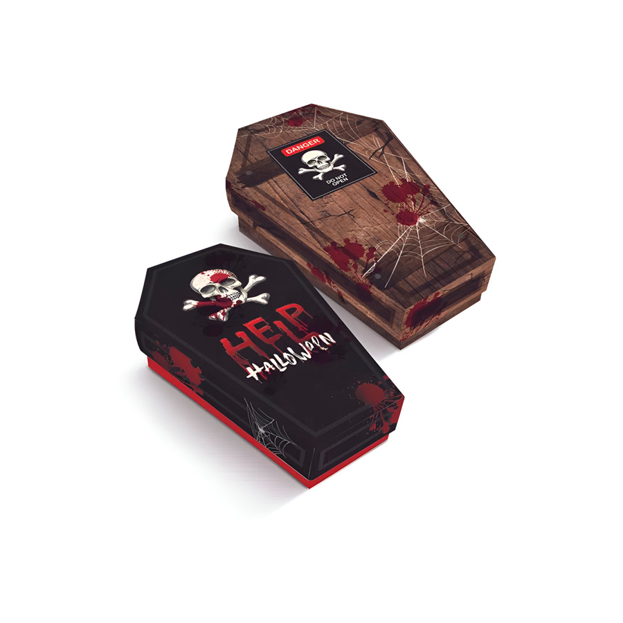 Seja para festas de Dia das Bruxas, eventos temáticos ou festas de aniversário, a Caixa para Lembrancinha em formato de Caixão adiciona o clima festivo do Halloween à sua celebração.