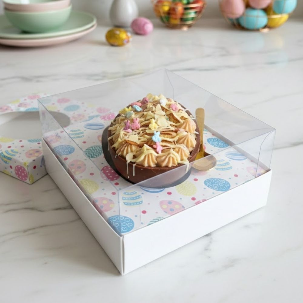 Com tamanho aproximado de 15x13x6,5cm, é ideal para acomodar meio ovo de colher de até 150g com segurança e organização. Conta com espaço lateral para encaixe de colherzinha, tornando a embalagem mais prática e completa para presentear ou vender, além de oferecer um acabamento harmonioso e profissional.