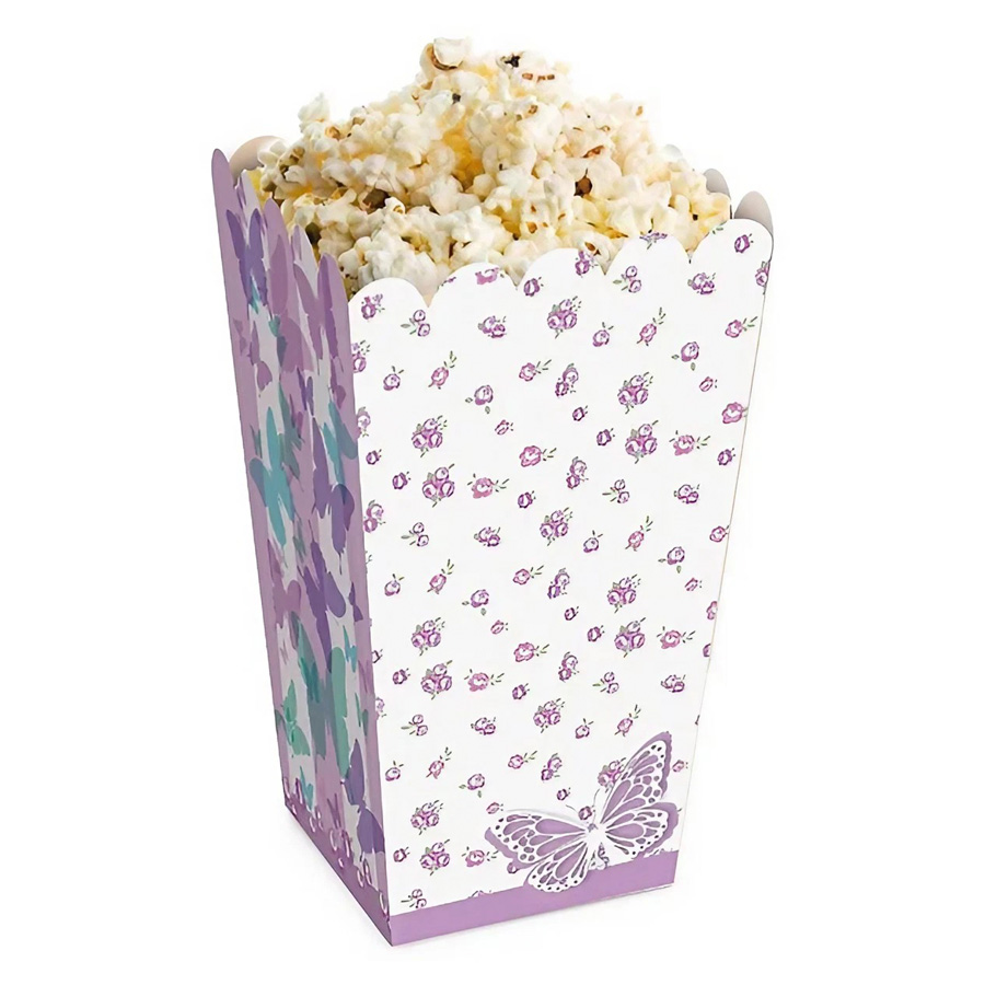 Com design encantador e cores vibrantes, a caixa é perfeita para servir pipocas e outros aperitivos em festas infantis com tema de jardim das borboletas. As borboletas coloridas e delicadas estampadas na caixa criam um ambiente mágico e divertido, que vai encantar as crianças e tornar a festa ainda mais especial. A caixa é leve e fácil de transportar, além de ser resistente e durável.