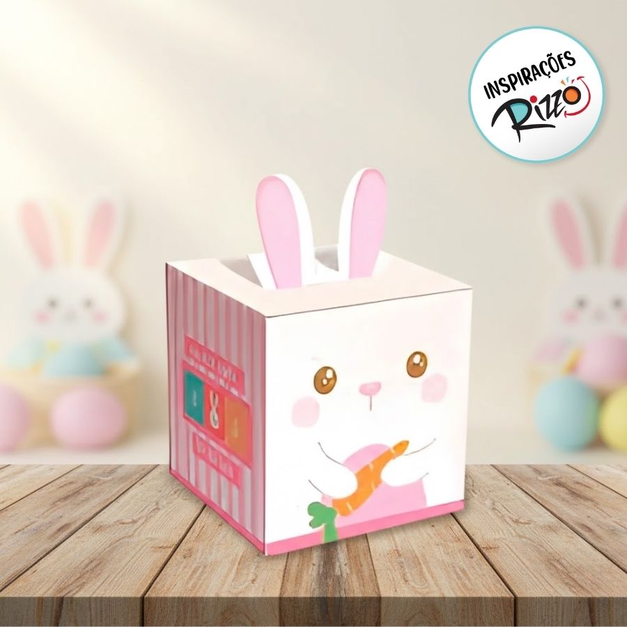 A Caixa Pop Up Páscoa Lina P 7x7x7cm é compacta, delicada e ideal para doces, chocolates e pequenas lembranças, com visual suave e acabamento temático.