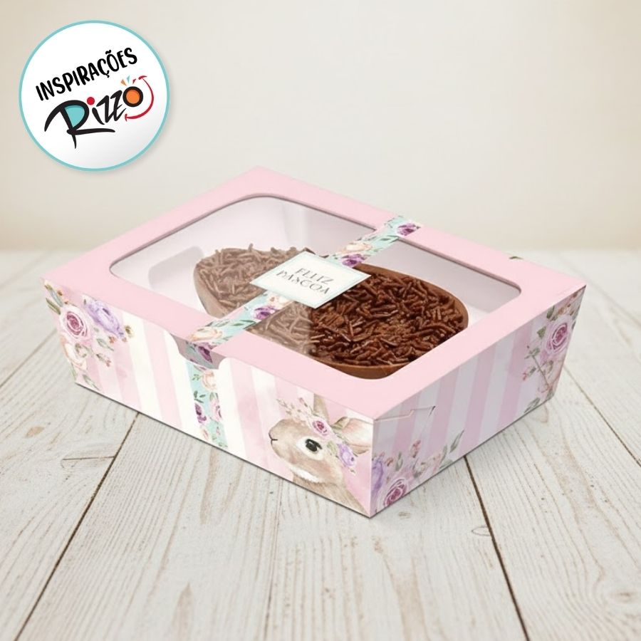 Produzida em material resistente, a caixa oferece excelente proteção ao meio ovo de 350g, garantindo segurança durante o transporte e mantendo o produto firme e bem acomodado. Sua montagem prática facilita o trabalho de confeiteiros e lojistas, enquanto o visual suave e harmonioso agrega valor ao ovo, deixando-o ainda mais atrativo.