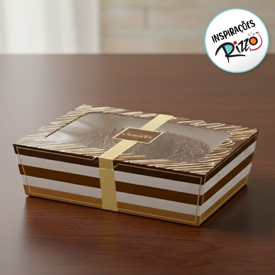 Produzida em material resistente, a caixa oferece proteção e firmeza durante o transporte, mantendo o produto seguro e com aparência impecável. Os detalhes no estilo chocolate tornam essa opção perfeita para confeiteiros, lojistas e presentes personalizados, trazendo um toque gourmet ao produto final.