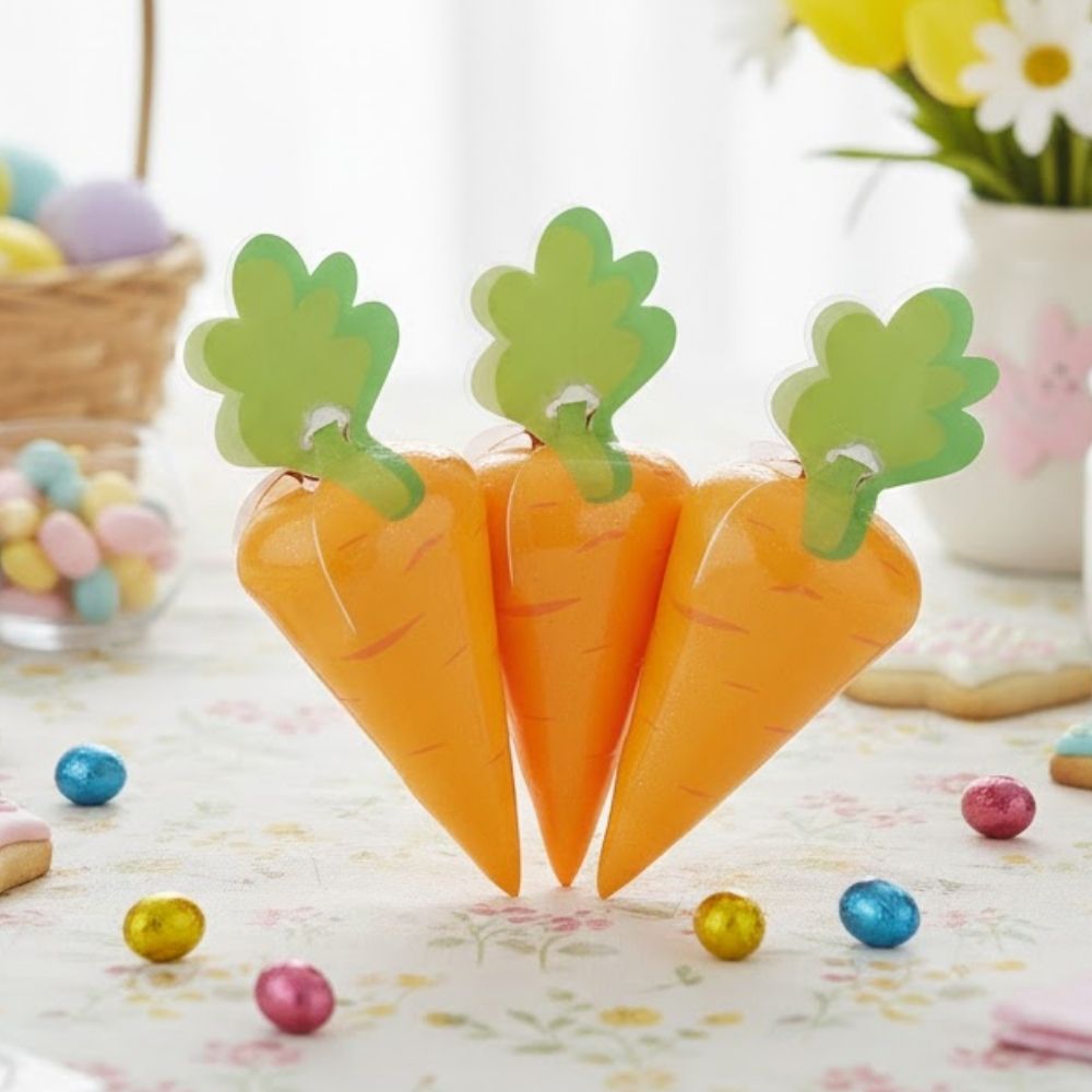 A caixa surpresa em formato de cenoura é um item criativo e encantador, ideal para compor decorações e lembrancinhas temáticas de Páscoa. Com medidas aproximadas de 16x5cm, possui design diferenciado que remete ao universo lúdico, tornando a apresentação de doces e pequenos presentes ainda mais especial.