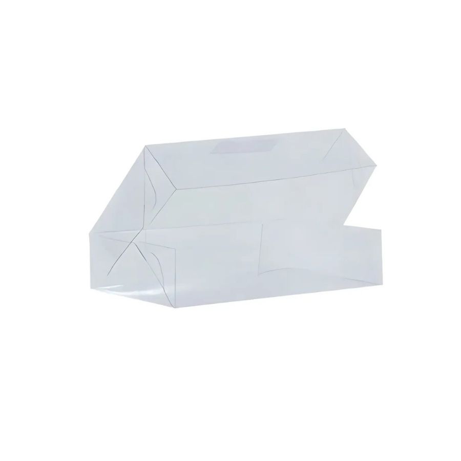 A caixa de acetato transparente Ref. 46, com medidas de 17x11x9cm, é prática e sofisticada, ideal para armazenar doces, lembranças ou presentes, garantindo proteção e destaque ao conteúdo.
