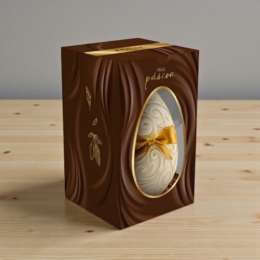 Indicada para confeiteiros, chocolaterias e produções artesanais, essa caixa resolve a necessidade de embalar ovos de Páscoa de forma segura e atrativa. O formato vertical acomoda ovos de 250 a 350g com estabilidade, facilita o transporte e contribui diretamente para a valorização do produto no ponto de venda.